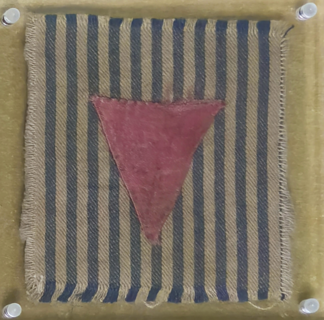 At the center of the display is a rare pink triangle artifact preserved by Tuviah Friedman (1922–2011), a Holocaust survivor, Nazi hunter, and documentarian. Archival records suggest the fragment likely belonged to a young prisoner who perished after forced labor at Buchenwald concentration camp. The artifact stands as powerful evidence of a system of persecution that sought not only to imprison, but to erase gay men from society.
